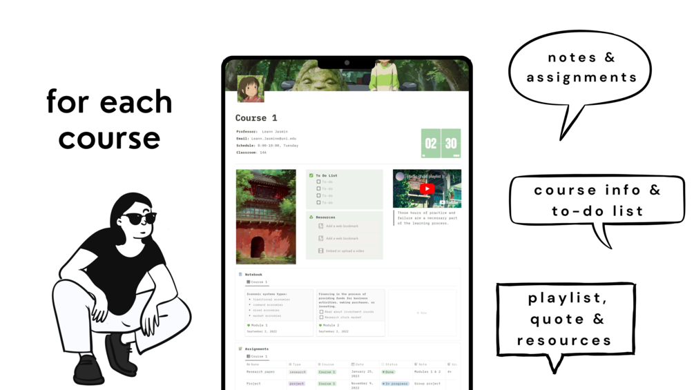 - Organize your college or school life by tracking your schedule, assignments, and study notes